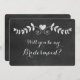 Este cartão de convite para damas de honra vintage tem um bonito design de pergaminho cardíaco e folha no topo, com o seu texto personalizado abaixo. A imagem e o texto são colocados em um fundo do quadro negro da cinza. Simples, mas elegante, e fácil de personalizar. A parte traseira tem o mesmo plano de fundo do quadro com o texto personalizado restante.