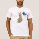 Uma bandeira finlandesa dada forma coração é colocada ao lado de um mapa de alivio de Finlandia neste t-shirt distintiva patriótico.
