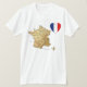 Uma bandeira francesa dada forma coração é colocada ao lado de um mapa de alivio de France neste t-shirt distintiva patriótico.