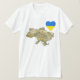 Uma bandeira ucraniana dada forma coração é colocada ao lado de um mapa de alivio de Ucrânia neste t-shirt distintiva patriótico.
