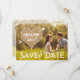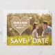 Avisos de casamento rústicos. Criado por Elke Clarke e disponível em www.zazzle.com/monogramgallery. Texto branco moderno, simples e ousado em um coração de aniagem perfurado por uma seta branca. Totalmente personalizável se você selecionar "personalizá-lo". Substitua a foto mostrada na amostra pela sua própria foto de noivado.