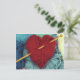 Lindo fotografia de um coração feito de lã colorida bornada sobre um fundo de azuis sortidos. Eu perfurei uma agulha de tricô através dela como uma flecha através do seu coração! Um amor e romance fofo!