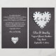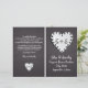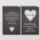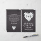 Coração de papel no quadro, com monograma de cerimônia de casamento dobrada e programa de festas ou recepção com papel de notebook, amam coração com buracos ao seu redor no quadro negro. No coração há suas iniciais. Este monograma de modelo de casamento rústico e monograma é completamente personalizável e é perfeito para um casamento casual especialmente para professores. Texto em branco usando uma fonte que se parece com escrita manual. Você terá que dobrá-lo no centro. Escolha apenas este tipo de valor de papel à medida que ele se dobra bem.