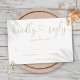 Um simples guião de ouro elegante, coração, responda gentilmente à placa RSVP com seus detalhes definidos na tipografia quic. Projetado por Thisnotme©