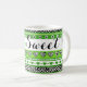 Design lindíssima e divertida com flores adoráveis, corações com padrão zebra, listras e pontos. Um padrão maravilhoso em verde, preto e branco na doce caneca de 16 anos. Totalmente personalizável, fácil de personalizar com seus detalhes, nomes, fontes e texto. Um doce e perfeito presente de dezesseis.