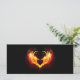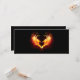 Coração de anjo com asas flamejantes em fundo preto.