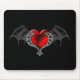 Um coração de joia, requintado para parecer ligeiramente esmagado e marcado por delicadas asas de morcego, representa a beleza das imperfeições.Um presente perfeito para os góticos e românticos em sua vida, esta peça adiciona um toque de elegância escura.