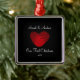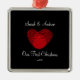 Nossos primeiros enfeites de natal caracterizam um coração vermelho bonito do thumbprint ajustado em um fundo preto rico! Personalize com sua informação e data e você são todos ajustam-se para ir! Presente datado maravilhoso da lembrança para seu primeiro Natal e uma grande adição a você coleção dos enfeites de natal.