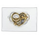 Cardíaco mecânico, volumétrico e steampunk com manômetros de pressão, de aço e de ouro sobre fundo branco. Estilo Steampunk.