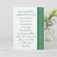 Este convite elegante do casamento caracteriza uma beira do verde esmeralda ao longo da borda direita do cartão com um weave celta branco compo de corações estilizados. A esquerda caracteriza a abundância do espaço para todos os detalhes de seu evento especial com algum texto da amostra no lugar que pode ser personalizado para caber suas necessidades. Um grande coração celta do Weave no verde decora de volta a adiciona um toque final da classe.
