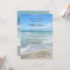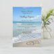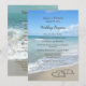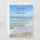 Elegante e belo programa de casamento e lista de festas de casamento. Corações cênicos na imagem da praia de areia, para visões de relaxamento no paraíso, comemore seu casamento na praia com esta adorável design. Dois corações interligados desenhados na areia da praia na costa oceânica, perfeito para um destino, ilha, paraíso tropical, evento náutico costeiro. Turquesa azul e areia bronzeada com ondas brancas caindo na costa.