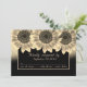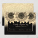 Lindo convite de RSVP de casamento com girassóis dourados, brilho dourado e moldura que pode ser personalizado com o seu texto. Selecione o botão "personalizar" para alterar o estilo da fonte, cor e tamanho.