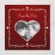Anúncio personalizado de salvamento de data com corações dourados em fundo vermelho escuro. Adicione sua foto e personalize com suas próprias informações ou clique em "Personalizar" se precisar editar ainda mais o layout.