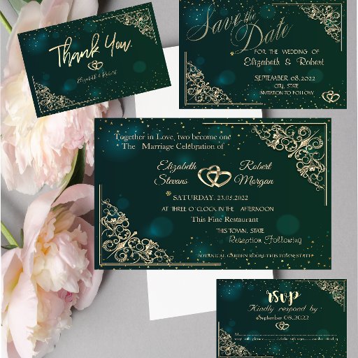 Elegant Gold Hearts Frame Green InvitationsCriado por Zorica Bozic-Blazic