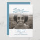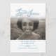 Programa funerário de serviço simples cinza azul e branco de dois lados no nosso programa funerário para sempre. Programa simples, mas elegante, substitua o texto de exemplo e os porta-fotos por suas próprias três fotos especiais e detalhes de informações. Tipografia original e em nossos corações gráficos e design para sempre, de Sarah Trett. www.sarahtrett.com para www.mylittleeden.com (Crédito da foto de Guilherme Stecanella na foto modelo Unsplash é apenas uma imagem marcante para você substituir).