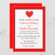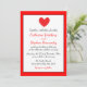 A parte de trás do convite apresenta um padrão cardíaco vermelho de coordenação.