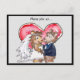 Aqui está uma noiva e um noivo de desenho animado bonitinhos começando sua primeira dança de casamento em frente a um coração vermelho que você pode transformar em cartões de save the date do seu casamento. Personalize todos os elementos de design desses hamsters felizes para sempre!