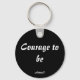 Este Chaveiro tem a expressão "Coragem em ser" em letras brancas sobre fundo preto.