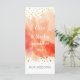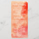 O moderno programa de casamento de cor de pêssego de cor de pêssego abstrato e folha de ouro confete com uma pintura de cor d'água pintada manualmente com textura em tons de laranja de coral, folhas de esqueleto branco, confete de folha de ouro e texto em branco e cinza.