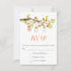 Ramificação com laranja de coral e cereja de pêssego floresce e jars mason Spring casamento RSVP resposta/cartão de resposta apresentando um galho castanho de uma cerejeira com laranja de coral deslumbrante e flores de sakura de pêssego com folhas verdes e jarras mason. Este moderno design de modelo de casamento elegante e na moda floral é totalmente personalizável e faz parte de um jogo de casamento perfeito para o seu casamento de primavera ou jardim de verão.