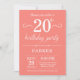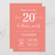 20 Aniversário Convite com Fundo Coral. Aniversário Adulto. Homens ou Mulheres no Dia Convidam. 13 15 16º 18º 20 21 rua 30 40º 50º 80 de 60º 70 de 100º, qualquer idade.