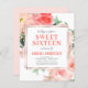 Orçamento Personalize este Na moda Rosa, Branco e Coral Pêssego Elegante e Primavera de Aquarela Moderna Doce 16 Convite em fundo branco com sua mensagem e detalhes. Este convite para na moda inclui flores rosa e verde botânico moderno com tipografia fofa e elegante para uma doce celebração 16 especial.