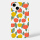 Esta capa de telefone tem uma design escandinava de flores e folhas espalhadas em coral, ouro e sábio verde.