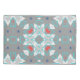 Beautiful geometric mandala pattern featuring a vibrant color palette of coral red, turquoise blue, soft gray, and crisp white. This intricate symmetrical design combines floral motifs with geometric precision, creating a mesmerizing kaleidoscope effect that draws the eye to its centered composition.