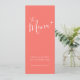 Menu de janto de casamento de cor simples e laranja e branco moderno ou menu de evento especial. Edite este menu de 4 cursos com suas próprias palavras. Simples mas moderno cardápio tipográfico e cardíaco branco. Ideal para casamentos simples, vermelhos cor-de-rosa-coral vivo, ou eventos temáticos corais ou corais. © Design www.mylittleedenweddings.com em zazzle.
