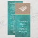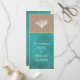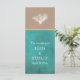 Coral reef azul de chalé e papel kraft de areia cerimônia de casamento e programa de festas mostrando um recife de coral branco em papel estilo kraft que cobrir a parte superior do cartão, um fundo azul-lacre com seu texto e uma faixa de ouro. O verso inclui o fundo corado em azul com texto em branco.