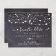 Reserve a Data! Anuncie o seu casamento a amigos e familiares com estes cartões salve a data rústicos do orçamento. Estes cartões de convite para casamento têm uma opção de envelope. Estas luzes de cordas únicas e o casamento da ardósia do quadro de controle, salvando as cartas, farão uma impressão duradoura, seus hóspedes se certificarão de salvar a data! COPYRIGHT © 2020 Judy Burrows, Black Dog Art - Todos Os Direitos Reservados. Corda de Orçamento Luzes De Casamento Salvar A Data Russo