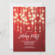 Cordas festivas de luzes penduradas colocadas em um convidado de festas de fundo vermelho.