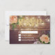 Modelos De Placa De Resposta RSVP De Casamento - Script Dourado Elegante com Rosas Brancas de Pêssego Floral e Luzes de Cordas no Fundo Russo de Madeira. Um Design Perfeito Para O Seu Grande Dia! Todo Estilo De Texto, Cores, Tamanhos Podem Ser Modificados Para Ajustado Das Suas Necessidades.