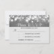 cartão RSVP de casamento de cinza prateada com luzes de cordas suspensas e fundo de textura de shimmer com falso brilho (não com brilho real).