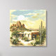 Um impressão de arte que captura vividamente a essência da vida em fazendas, com foco na estética Adobe Ranch, mostrando as cores vibrantes da paisagem do deserto.