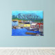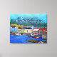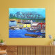 Pintura colorida e estilizada da bela VV&A Waterfront com o majestoso pano de fundo da Montanha Mesa na Cidade do Cabo, África do Sul