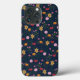 Pintor floral multicolorido prado elegante, com uma coleção de flores florescentes, flores vermelhas, flores laranja, flores pequenas amarelas e flores cor-de-rosa giro, sobre um simples fundo azul-marinho. Uma tendência de tons vibrantes floresce o padrão botânico.