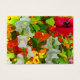 Este cartão de troca de artista colorido é um banquete para os olhos! Ele apresenta uma configuração de jardim informal com snapdragões cor-de-rosa e brancos, náuseas em laranja, amarelo e vermelho e uma papoila vermelha. A fotografia original foi digitalmente melhorada para produzir um sentimento impressionista.