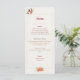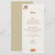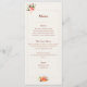 Um lindo cardápio com rosas em tons de vermelho, laranja e amarelo, com botões de flores e pulverizações disparados com folhagem em tons de verde e esticado, sobre um fundo de cor suave. Voltar é uma sombra mais escura. O texto é emoldurado por uma borda fina, com um pequeno buquê na parte inferior. Perfeito para um casamento outono, ou um tema rústico. Coordenação de convites e mais disponível.