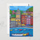 Cartão de Posto colorido da vila colorida e fascinante de Vernazza e é uma bela catedral em Cinque Terre, Itália pela artista popular Lisa Lorenz