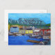 Pintura colorida e estilizada da bela VV&A Waterfront com o majestoso pano de fundo da Montanha Mesa na Cidade do Cabo, África do Sul