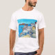 Pintura vibrante, estilizado de Santorini bonito, piscina com sua abóbada azul majestosa pelo artista popular Lisa Lorenz em um Tshirt à moda. Disponível para todos os estilos da camisa, tamanhos para homens, mulheres e crianças.
