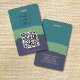 Aumente sua presença profissional com nosso Crachá de ID de código QR personalizável. Este crachá elegante e moderno apresenta um design único com cores editáveis para corresponder à identidade da sua marca. A frente do crachá inclui um espaço para o seu logotipo e um código de QR digitalizável que direciona para o seu site ou para as informações de contato, garantindo uma rede fácil e o compartilhamento de informações. A parte traseira do crachá oferece amplo espaço para detalhes importantes de contato, fazer que alguém possa devolver seu crachá se perder. Perfeito para conferências, eventos corporativos e uso diário de escritórios, este crachá combina funcionalidade com uma aparência polida.