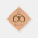 Cores personalizadas de guardanapos de casamento. Selecione a cor de fundo que corresponde ao seu tema. Guardanapos personalizados com ilustração de corações ligados a ouro.
