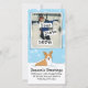 Feliz cão de desenho Corgi sentado na neve com flocos de neve descendo. Adicione sua própria foto e cartões de natal pessoal a este cartão de Natal Corgi. Um cartão com fotos personalizado divertido para todos na sua lista de Natal. Visite o Doodle World de Jenn para obter produtos mais legal e presentes originais com este desenho animado de cão feliz.