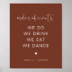Esta placa de ordem de eventos apresenta uma editável cor de ferrugem boêmia terracota e uma design moderna minimalista com o ditado, "nós bebemos, comemos, dançamos." Altere facilmente a fonte e a cor de fundo para corresponder ao seu evento. Isto é perfeito para um casamento, chá, chá de panela, festa de noivado ou qualquer outro evento especial.