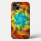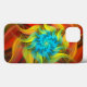 Uma imagem fractal multicolorido (vermelho, laranja, azul), parecida com uma flor em floração.