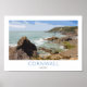Vintage Rail style poster com Halzephron Cove na Península de Lizard, Cornwall, Inglaterra.
