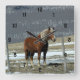 Cavalo Belga Em Paddock, Relógio De Parede. Solteiro de Arte Digital, cavalo belga, no pórtico de inverno, atrás da cerca de arame farpado. Ajustados bem na fazenda ou no rancho. Totalmente personalizável; adicione seus próprios números ou deixe-os como estão.