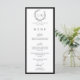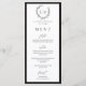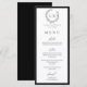 Elegante coroa de monograma botânico preto e branco cartão de menu plano de casamento.